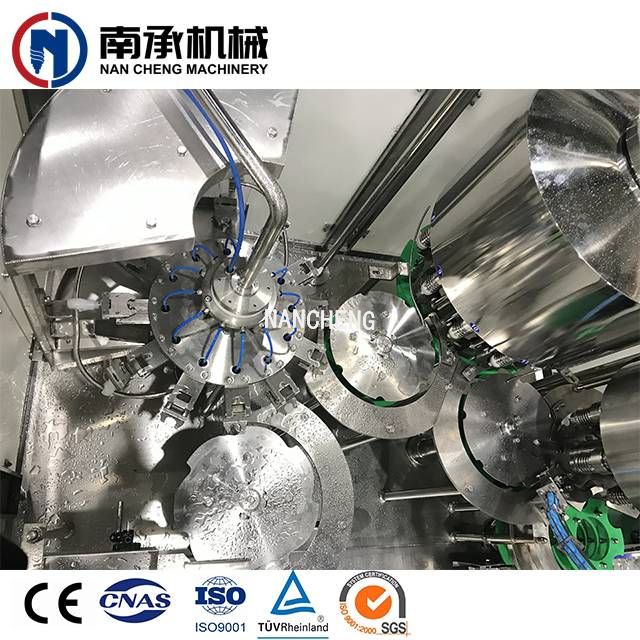 瓶子大小:200毫升~ 2 l 容量:4000瓶/小時 自動沖洗灌裝旋蓋機(三合一) 西門子電氣設備 CE、SGS、TUV、MA&AA證書