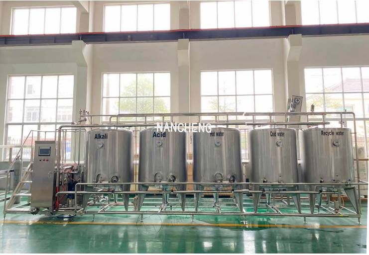 CIP清洗系統俗稱就地清洗系統,被廣泛的用于飲料、乳品、果汁、果漿、果醬、酒類等機械化程度較高的食品飲料生產企業中。就地清洗簡稱CIP,又稱清洗定位或定位清洗(cleaning in place)。就地清洗是指不用拆開或移動裝置,即采用高溫、高濃度的洗凈液,對設備裝置加以強力作用,把與食品的接觸面洗凈,用于衛生級別要求較嚴格的生產設備的清洗、凈化. 南承機械