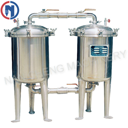 采用兩個三通球閥,將兩個單筒過濾器組裝在一個機座上,清洗過濾器時不必停車,保證其連續(xù)工作,是生產(chǎn)線過濾裝置首選,本過濾器的過濾元件,除采用不銹鋼濾芯外,亦可采用優(yōu)質(zhì)脫脂纖維棉,可濾掉粒徑1μ以上的顆粒,本過濾器亦可單筒使用,只需去掉共同機座,其余尺寸不變。